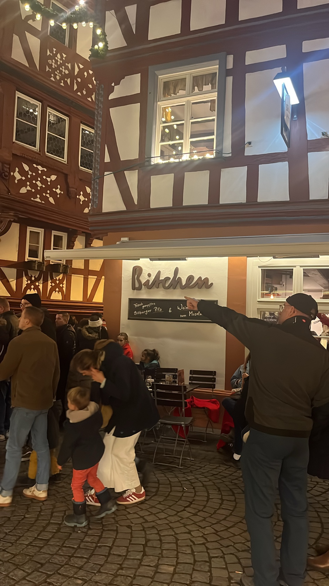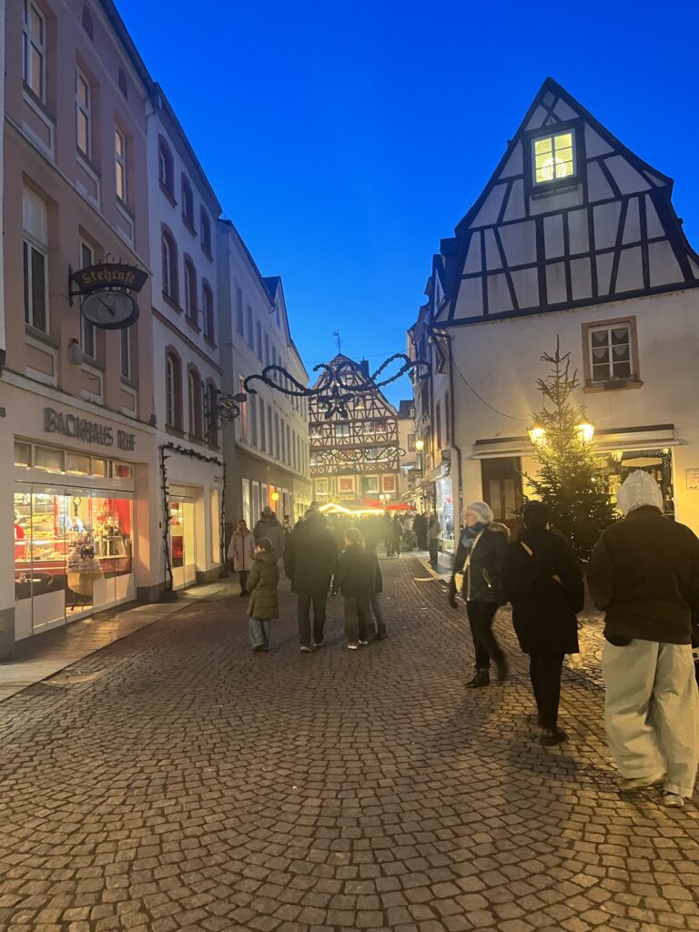 As we arrived across the other side of the bridge, we could peer into narrow market streets, classic old German buildings; more gingerbread houses! The narrow entrance opened out into a lively square that was full of people making merry, and Christmas music playing. It was really magical to walk into this from the entrance, and I couldn’t help but have a dopey grin on my face.