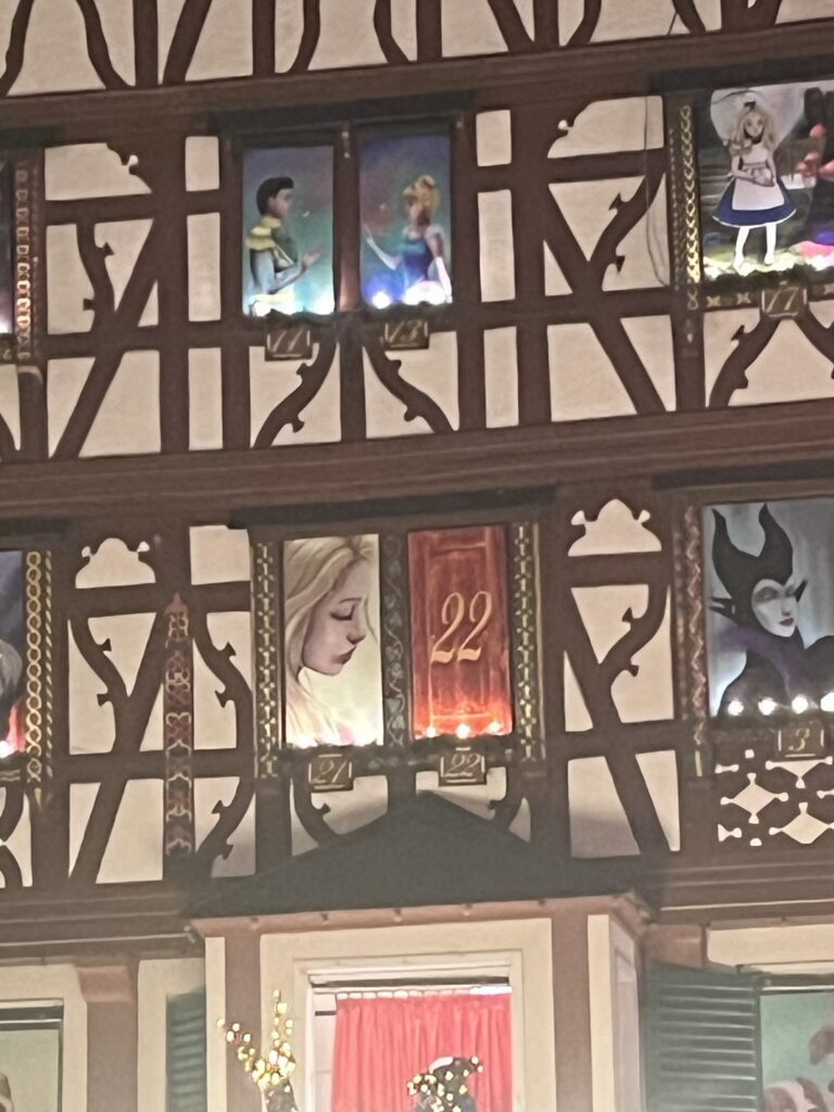 In the market, there was also a huge building which was an apothecary, being used as a giant advent calendar with Disney characters in each revealed window thus far.