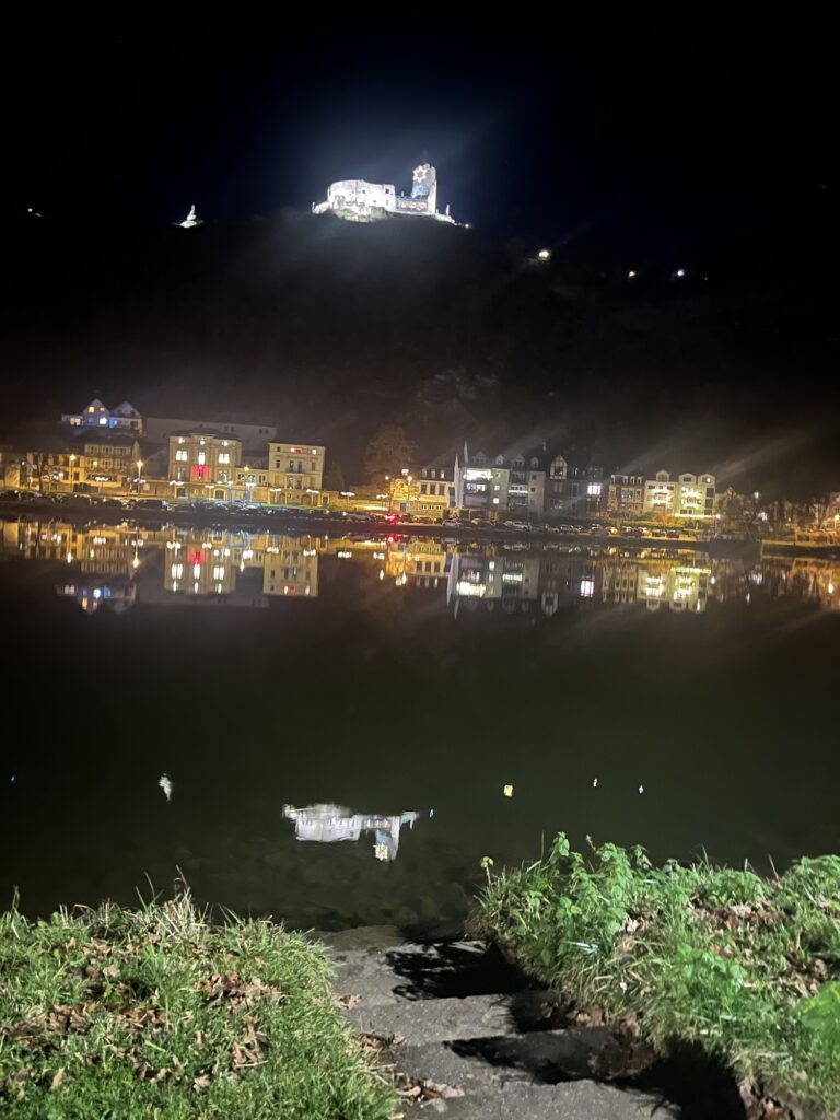 After the grand reveal we had to wait awhile for crowds to dissipate and then make our way back through the market Square to the bridge. The Riverside was equally as beautiful in the dark, river reflecting the castle.