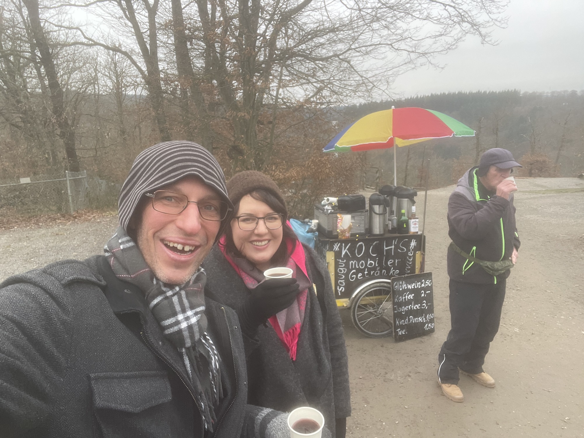 As we approached the suspension bridge, my guts dropped. Not literally. Just the sensation. Seeing the vast distance of what looked like decking hanging by thick wires, dipping alarmingly in the centre, before sloping back up to the other side of the beautiful tree filled valley, shades of evergreen and autumn rust. Gulp. I know I have to do it. So onwards. One foot in-front of the other, and a heap of trust, that’s all I needed. Through a stone entrance, Leon ahead with his whippet pace, I place my first foot on the wooden plank, total bridge width of about 1 metre wide, made of about 5 planks laid longwise, about 1.5m long each, held in huge bolts, 2 at each end of each plank. There are small gaps between the planks too, to add to the effect. I don’t let go of the thick metal rope, except to skim over each anchor point that tautly falls away diagonally into the valley below. As I approach closer to the most dipped centre point, the whole while muttering a mixture of expletives and soothing sentences to myself, I notice the gentle bouncy sway increase, and wonder if I’ll feel sea sick when I get off the other end. Sometimes, I just focus on a thread on Leon’s scarf, and other times bravely peer into to beautiful scenes of Forested nature below, that I’ve only ever seen in my flying dreams. The way back up the other side of the bridge felt extra steep, only adrenaline keeping me from stopping to grab a breath. We finally reach the other side, exhilaration that I’d done it, short lived, as I realise we either need to take a huge further 3km varying altitude hike which there are warning signs that not for inexperienced, or, cross back and take the smooth path of 1.6m. Leon takes a look along the muddy steep path that starts the hole loop, and it becomes clear, we are going back across. This time, I go first, which is somehow easier, as I can concentrate on the other end of the bridge rather than looking at the swaying planks Leon is stepping on, or over the edge. That was unexpected that going first would be easier. I can also go at my own pace instead of trying to keep up with ole long legs! I even could say I enjoyed the way back! Pure dopamine hits as I get off the start of the bridge this time, and I feel I could skip about laughing. Our wagon friend waves, claps, and thumbs ups us, wishing us merry Christmas as we jollily bound past him, reciprocating his gestures. We are plenty warmed up now and looking forward to getting back in the car, and planning to swing by an Aldi to get something for lunch (it ends up consisting of laugenbrot, which is a small pretzel bread baguette, and an oversized danish pastry style cake that only a European Aldi or Lidl can supply. Not the healthiest but it’s my birthday Boxing Day, and we did earn it!).