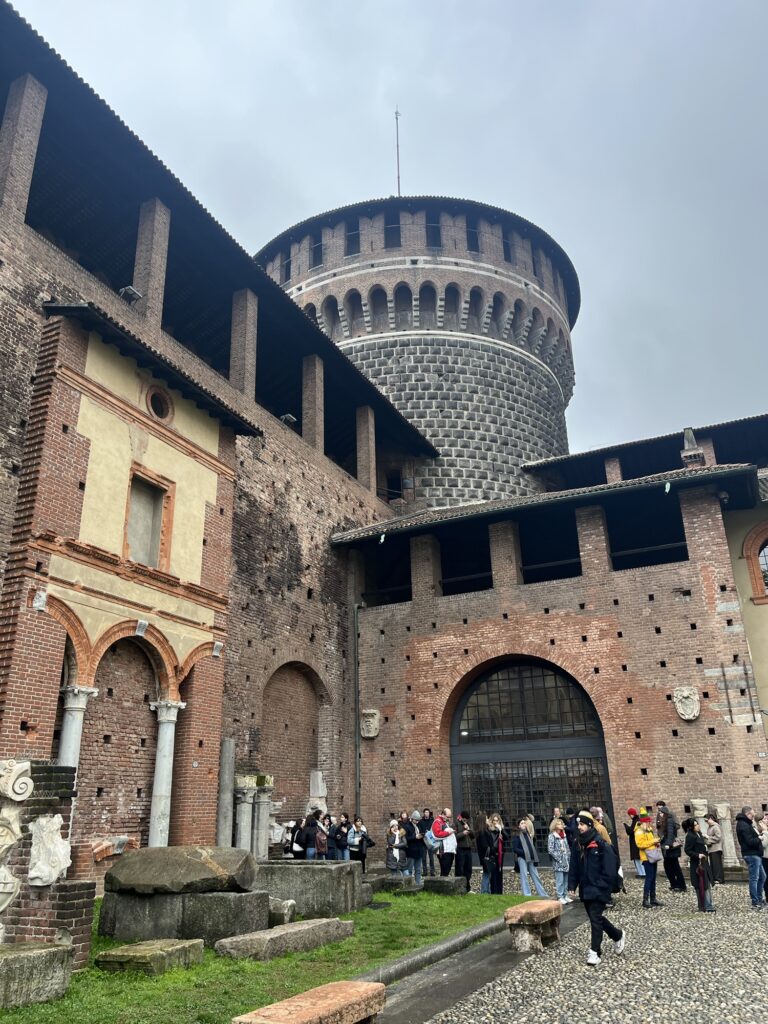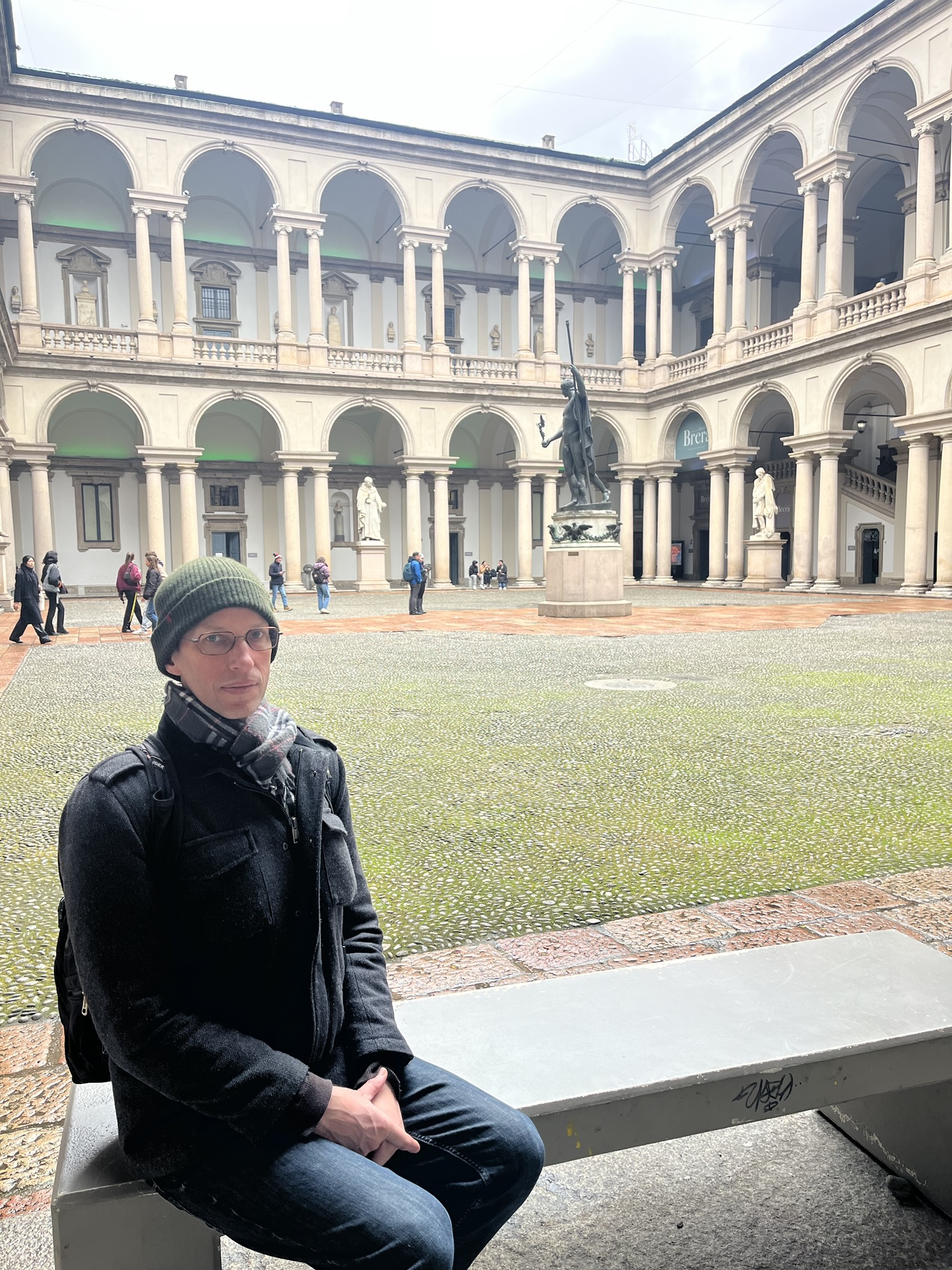 We then walked to a district called Brera, an artsy, off the beaten track vibe with small lanes and galleries/ indie shops. We found a building to go in (Pinacoteca di Brera), which had students learning many different art forms, many huge white statues, and a botanical garden which was still to see spring to breathe life back into it.