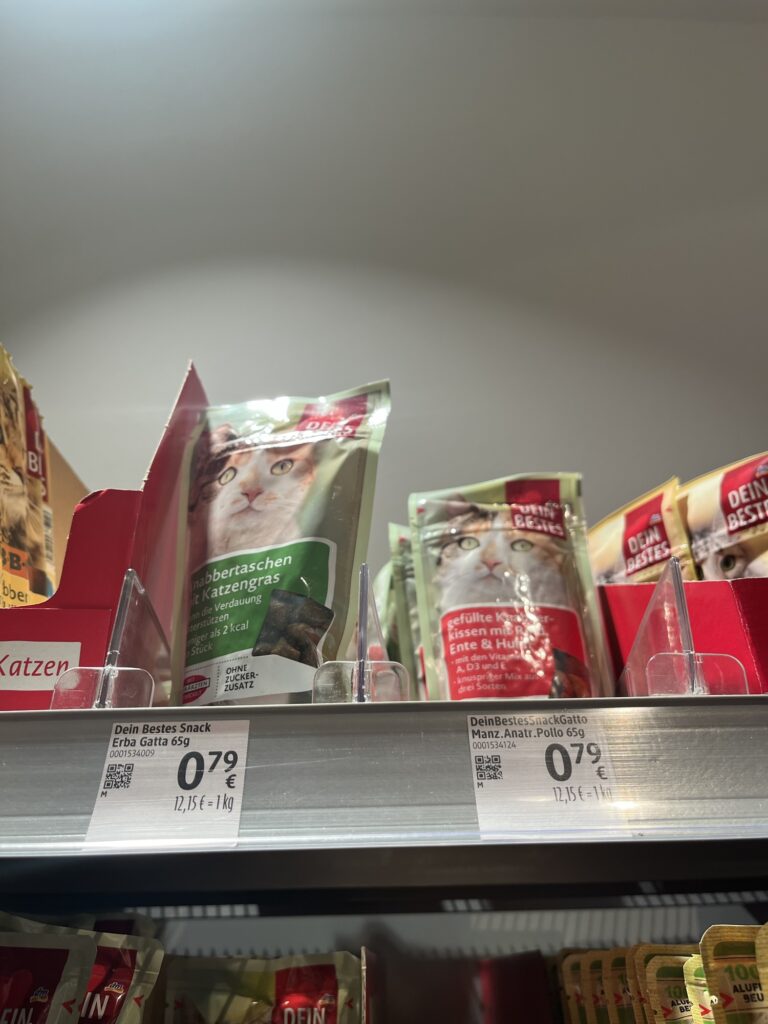 We also joyfully found a DM store (Italia) which is one of our fave German shops! It surpassed expectations, as it had all our fave things in from Germany, including Figaro’s German cat biscuits!!!