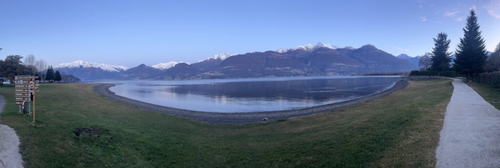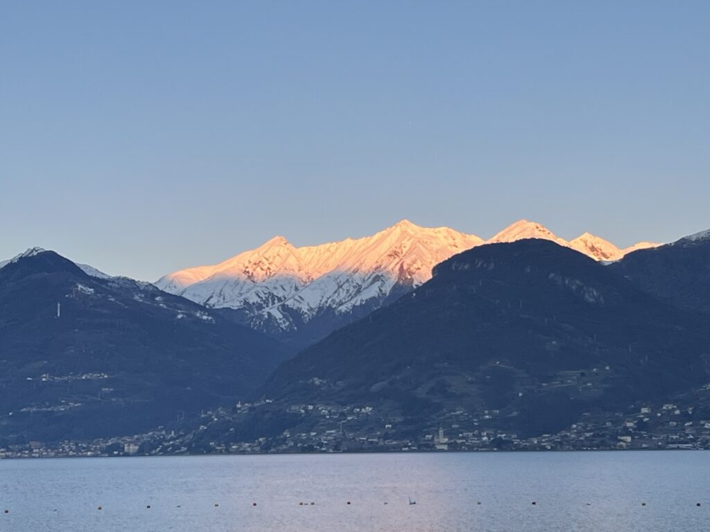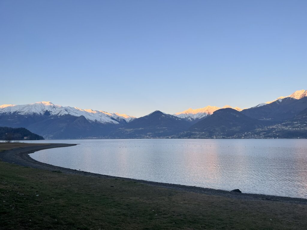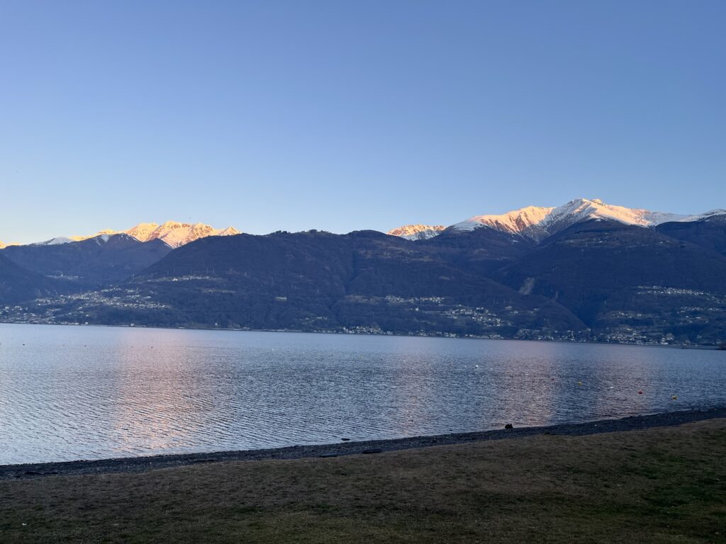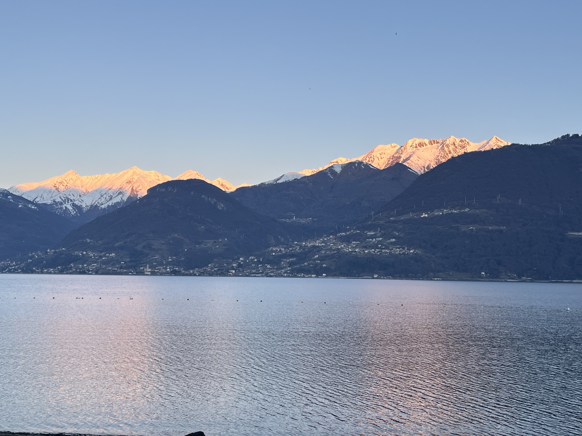 We woke up about 7am and decided to go for a walk with our morning coffee and see if we could see the sunrise which was due at 7:35. The sky was a magical colour of blue similar to how Norway was during its blue hours in the winter. The lake looked like a gently rippling glass, with mountains towering over the side, serenaded by crows and blackbirds singing their morning songs.